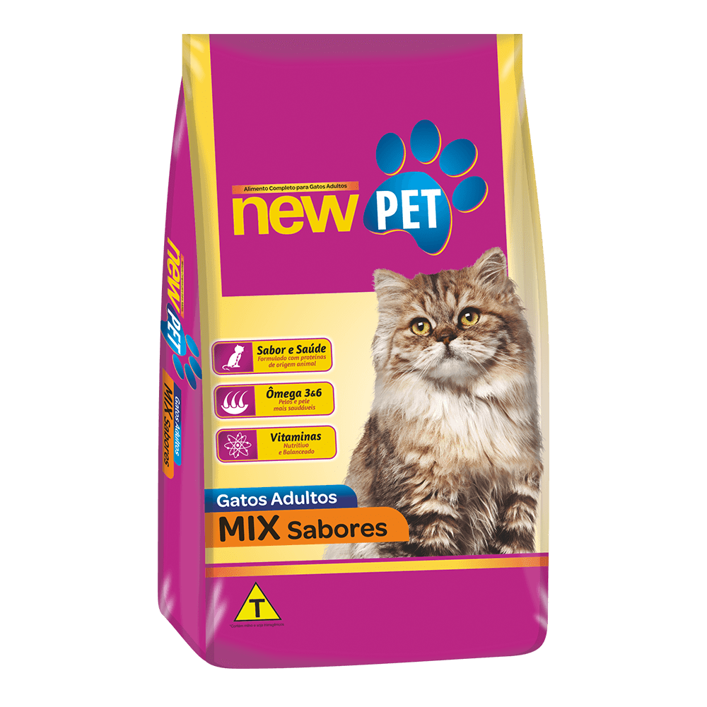 Uma xícara de chá (200ml) contém aproximadamente 80 gramas de NEW PET Gatos Adultos Mix.