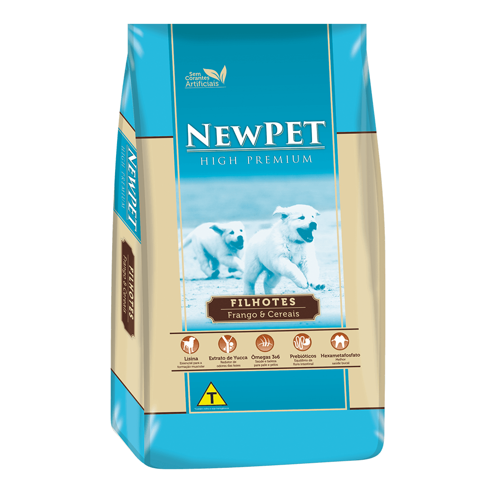 A oferta de uma nova dieta para seu cão deve ser realizada de forma lenta e gradual. Recomendamos a substituição diária em 20% do alimento antigo por NEW PET HIGH PREMIUM, totalizando 100% da nova dieta no quinto dia.